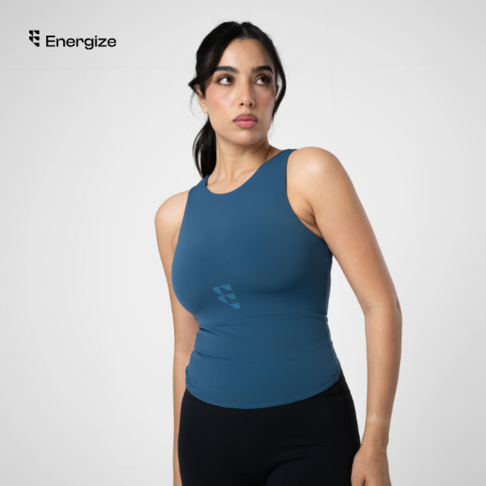 تألقي بأناقة وثقة مع توب "Energize" الرياضي بلونه الأزرق الداكن الجذاب. مصمم ليوفر دعمًا مريحًا وتهوية مثالية خلال تمريناتك. يتميز بشعار "Energize" البارز على الصدر لمسة أنيقة وخفية تذكرك بقوتك. مثالي لتمارين اليوجا، البيلاتس، أو كقطعة أنيقة لإطلالاتك اليومية.