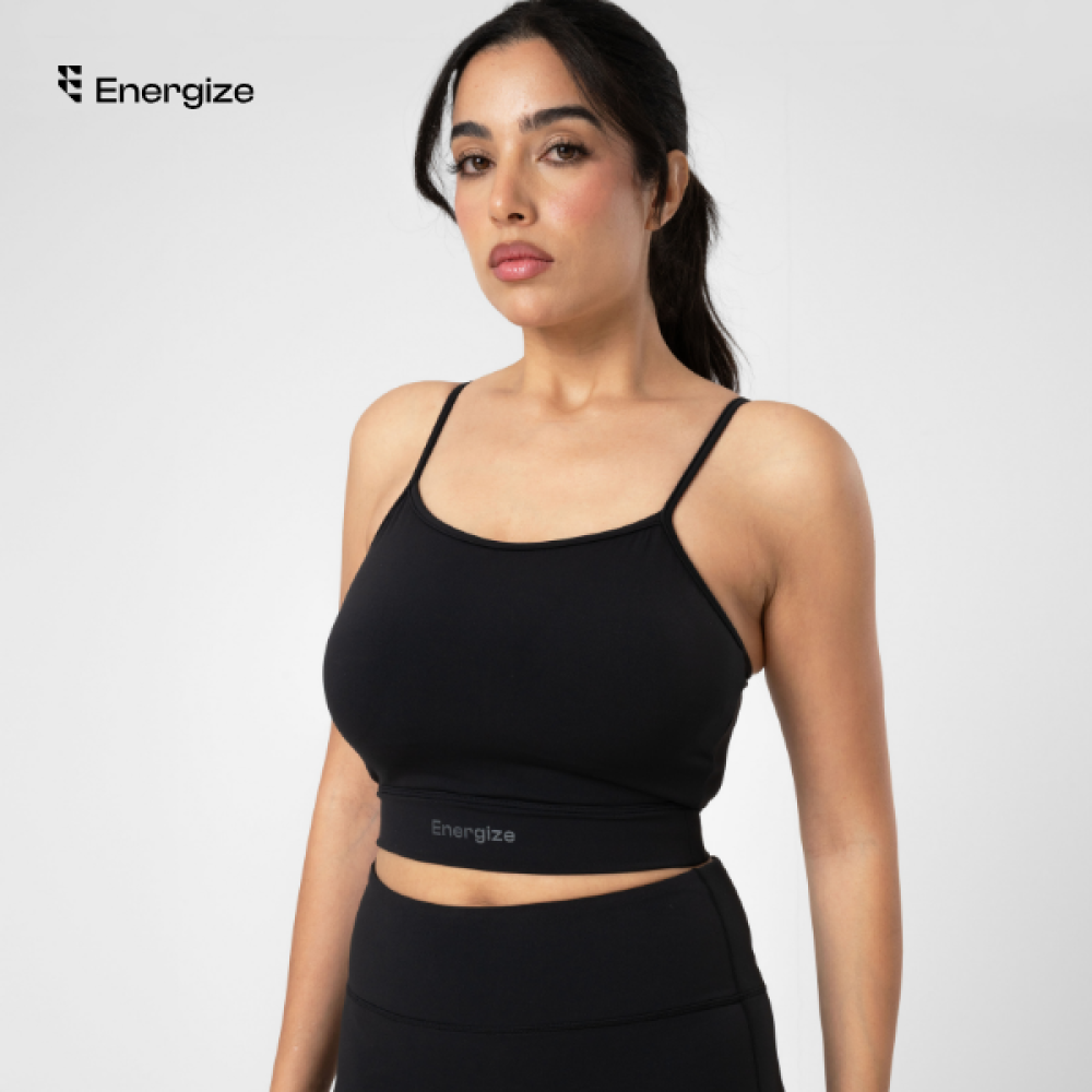 انطلقي في تمرينك بثقة وأناقة مع طقم "Energize" الرياضي المتكامل باللون الأسود. مصمم ليمنحك الدعم المثالي والراحة القصوى خلال جميع أنشطتك. التوب القصير يوفر دعمًا خفيفًا إلى متوسط، والليقنز يتميز بقصة مريحة وداعمة. كلاهما مزين بشعار "Energize" ليحفزك في كل خطوة.